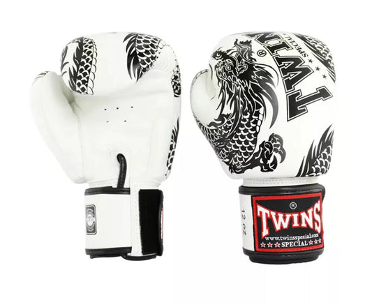 Twins Special 'Dragon' WHITE Muay Thai Boxing Gloves FBGVL3-49