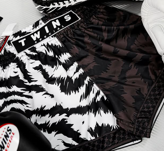 Twins Special TBS 'Jungle' Black/White Tiger Muay Thai Kickboxing Shorts